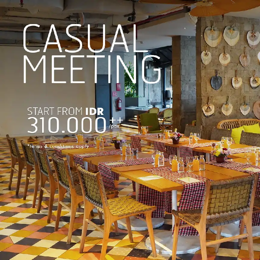 in the heart of Seminyak. From morning to evening, enjoy a stylish venue, multiple coffee breaks, and a full day of delicious meals—so your team can stay productive, refreshed, and well taken care of.