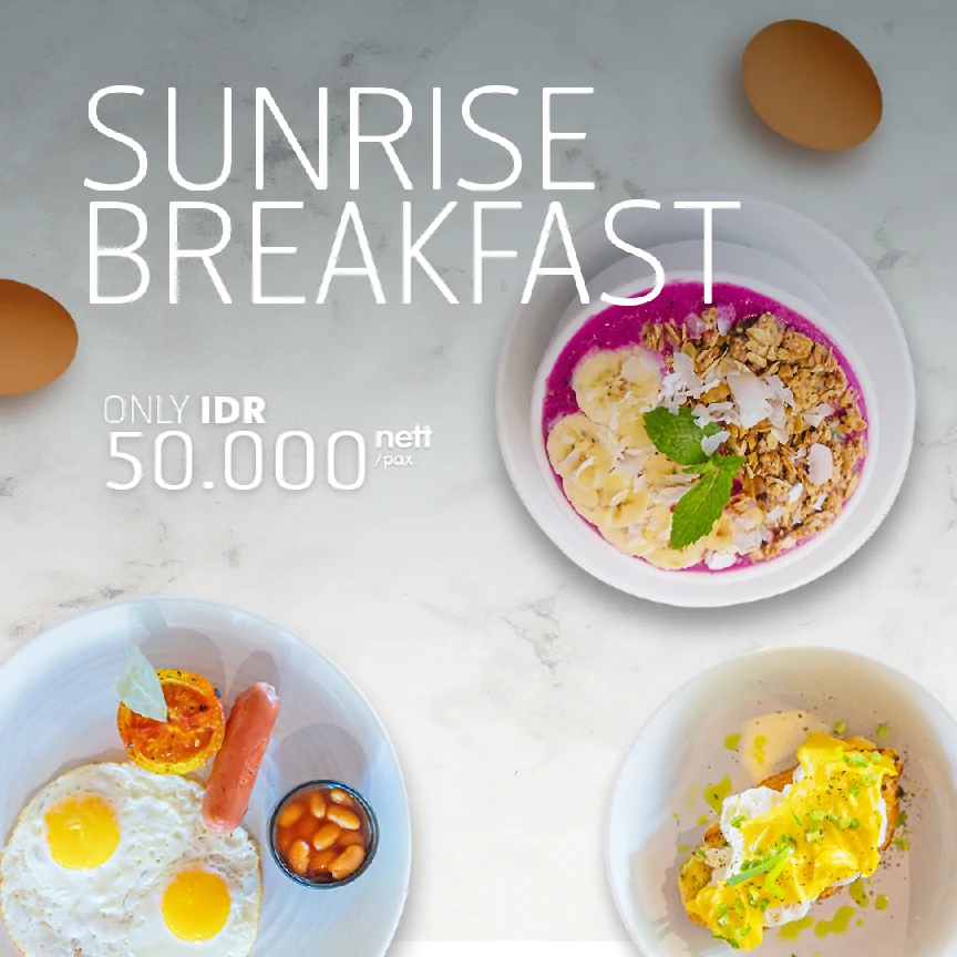 Start your day the right way with our Sunrise Breakfast at Kakatua Tropic Lounge.